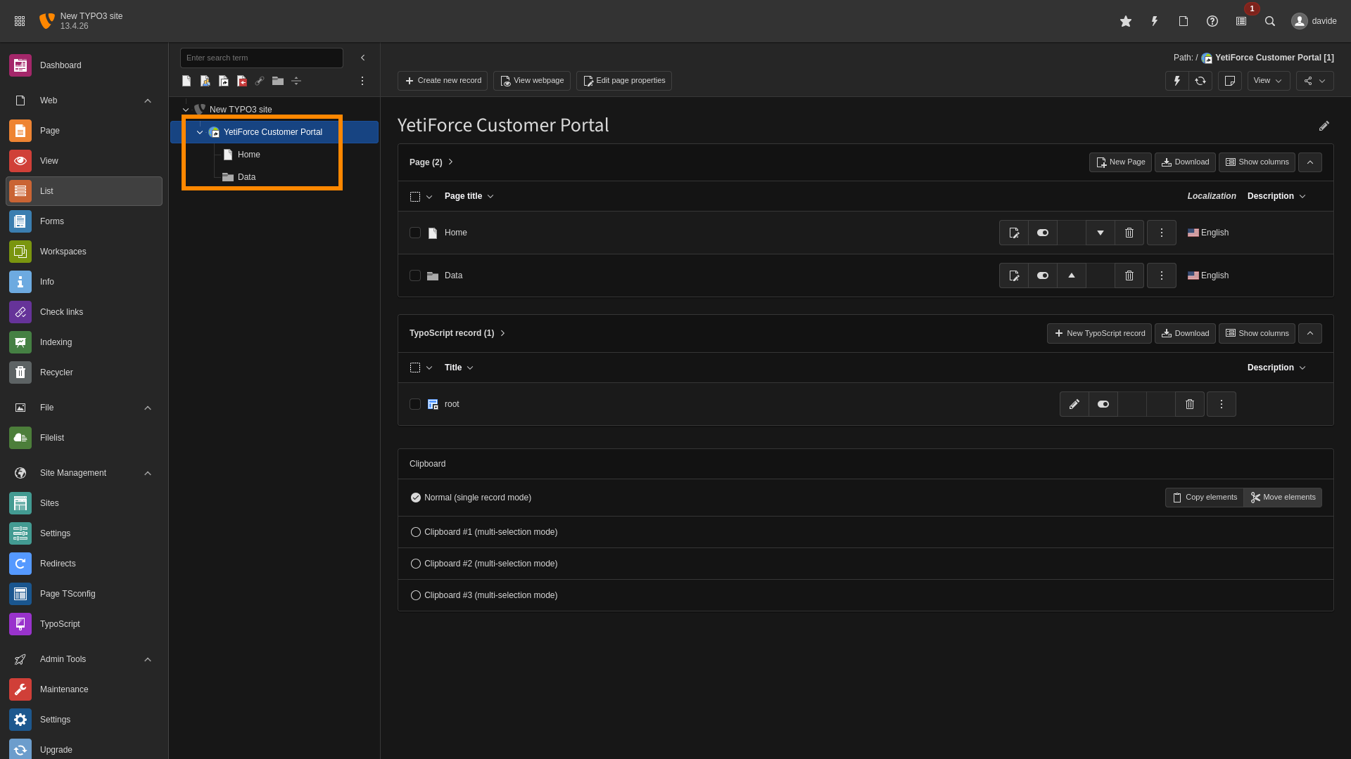 In this section will be showed how to configure TYPO3 to run YetiForce Customer Portal.