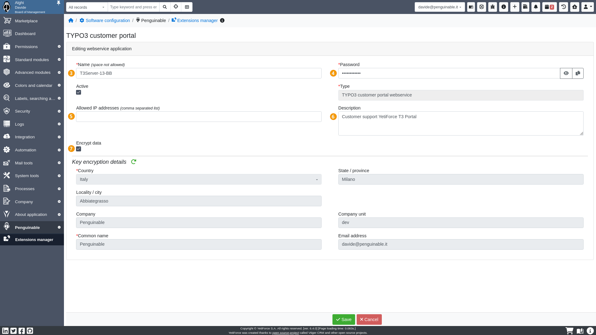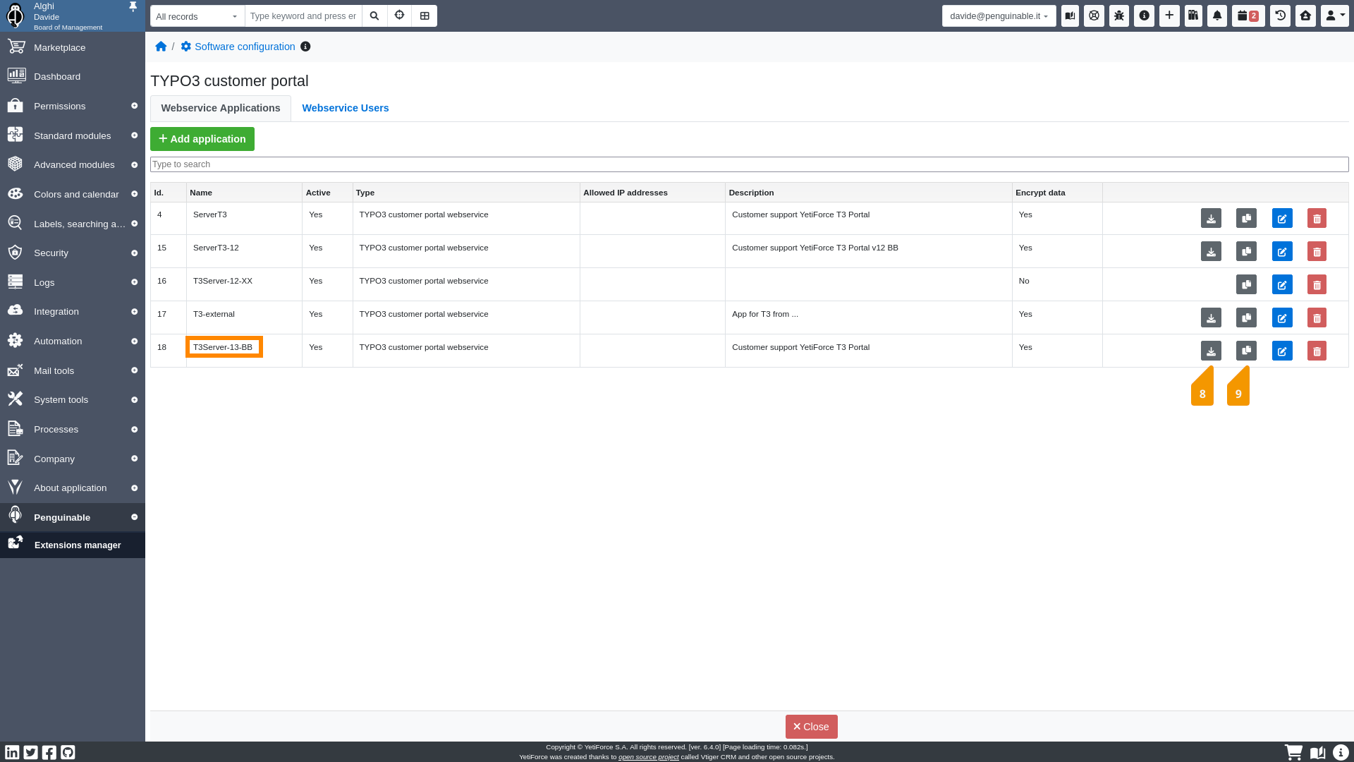 - and copy in clipboard…the API keyboth to set in the YetiForce Customer Portal Configuration TYPO3 record