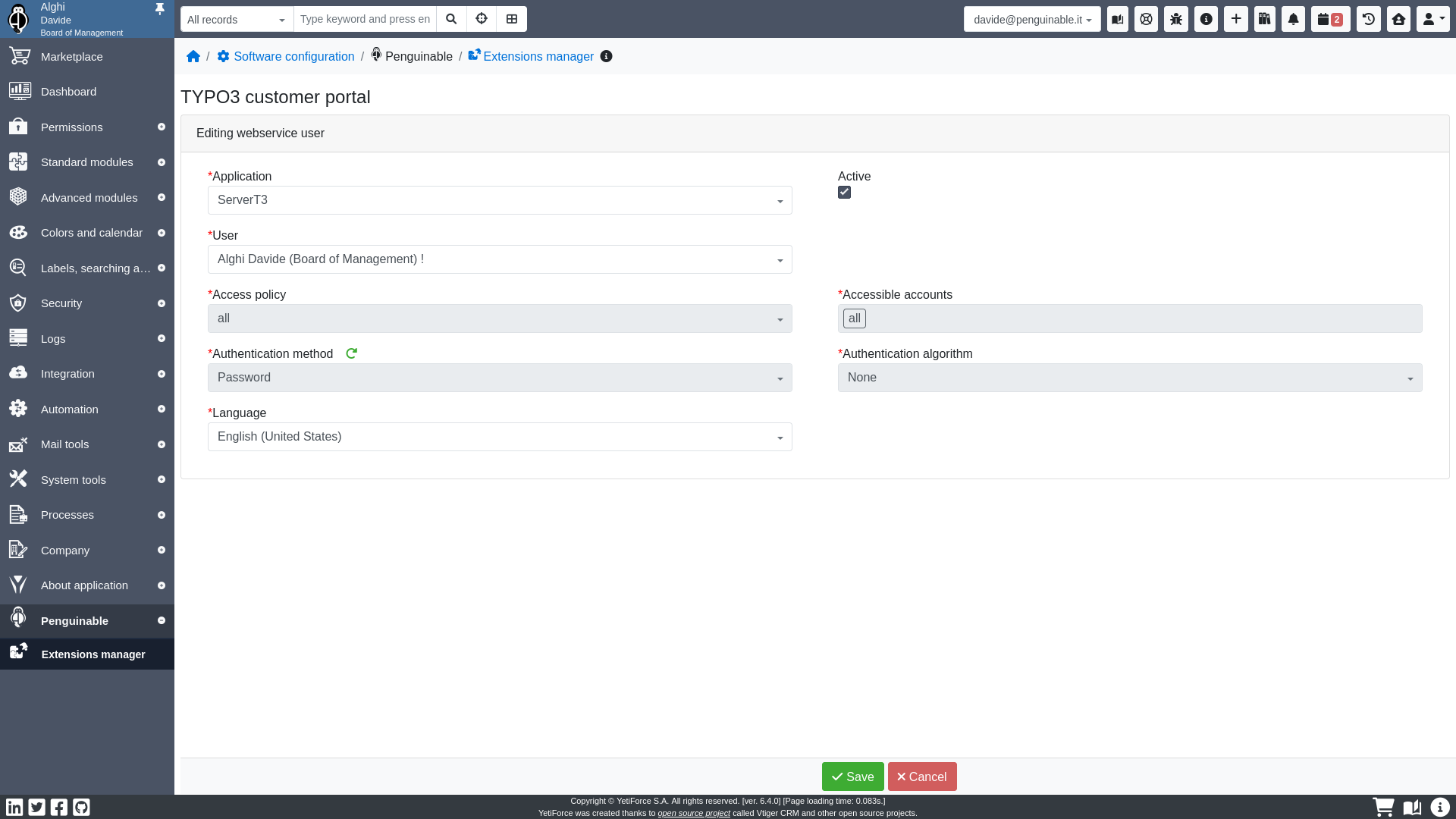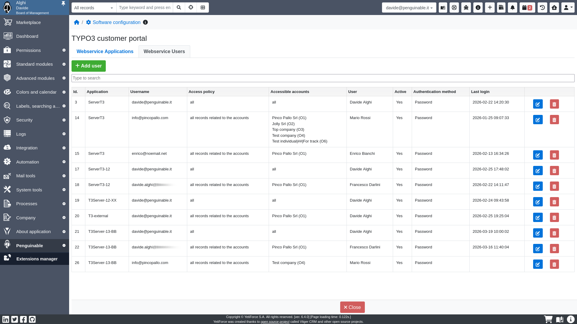 A single YetiForce Customer Portal (TYPO3 instance) can manage multiple YetiForce CRM instances.